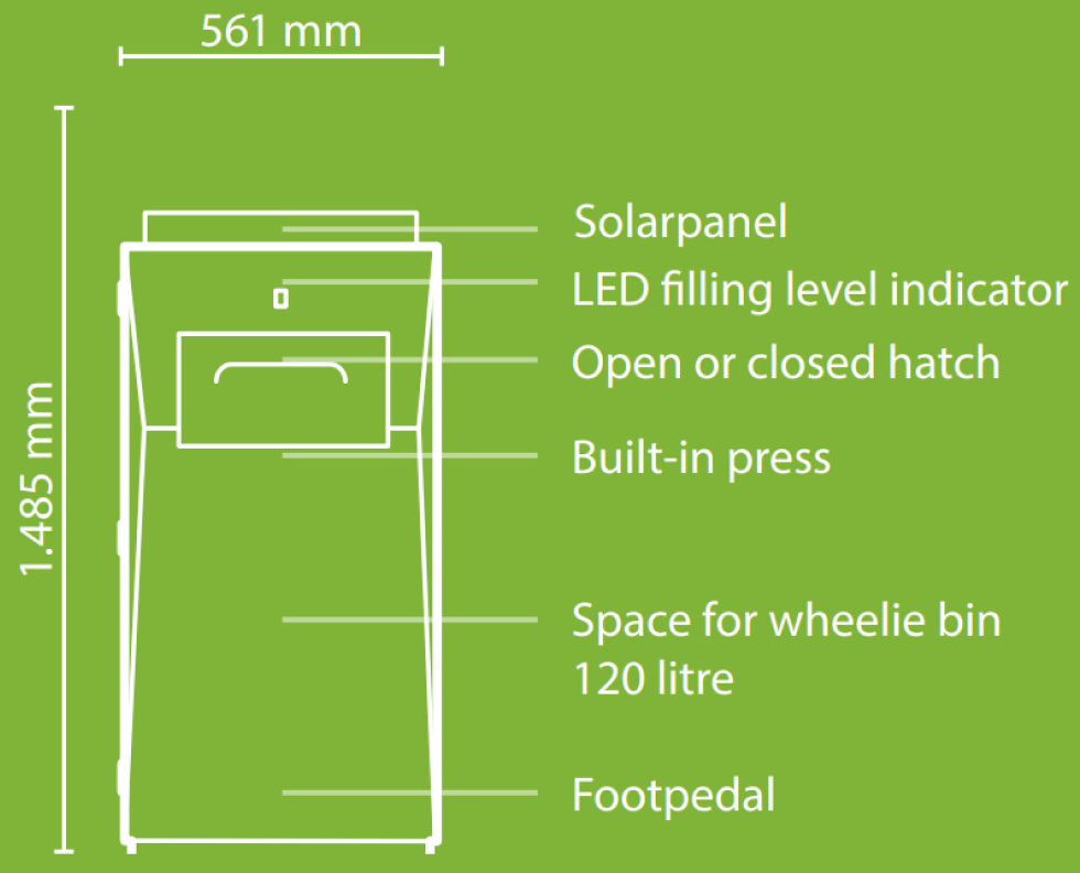 Může být vybaven senzorem a systémem GPS pro správné měření plnění a optimální vyprazdňování. Navíc jej lze kombinovat s dalšími verzemi WasteMate Basic a s chytrým odpadkovým košem na směsnž odpad: WasteMate 120.